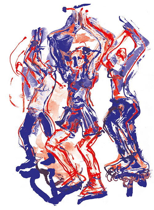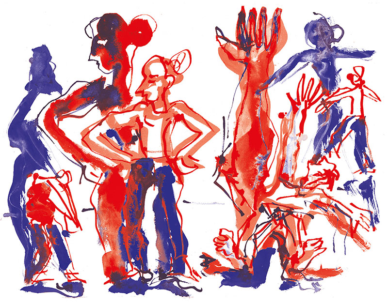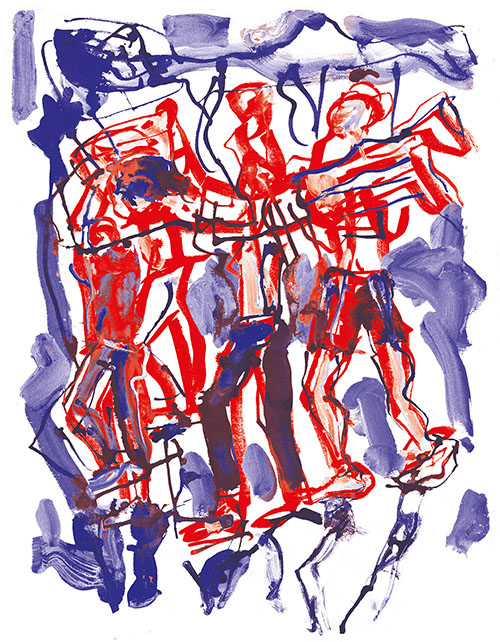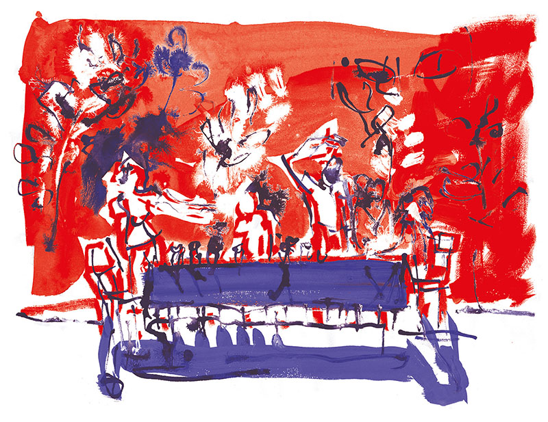 Je me souviens aussi comme ces jeunes étaient à la fois excités par le trac de jouer mais aussi confiants parce qu’ils avaient été regardés, guidés, aimés par les intervenants. voilà un frémissement, une vibration, une vague d’émotion que je revois dans les dessins de Patrick. » Yan Raballand