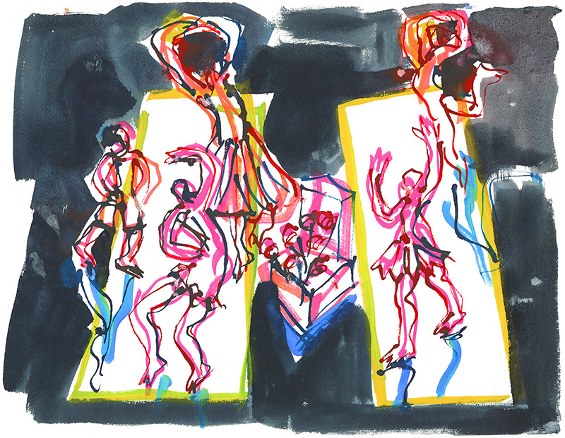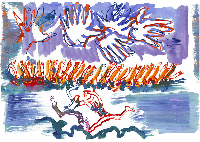 Les images de cette pièce éclatent sur ce dessin, sans «logique», sans désir de «faire sens», mais avec beaucoup d’humanité, de chaleur, d’intériorité….»