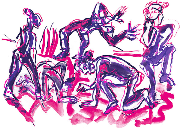 Charlotte bouge avec des angles, une danse acérée, une danse qui coupe l’espace, comme pour bien inscrire des traits de lumière dans le noir d’encre de la scène : j’imagine Soulages et son couteau de peintre. Je n’oublie pas les autres danseuses, belles, solides, présentes, tranchantes.