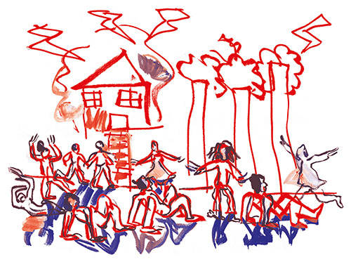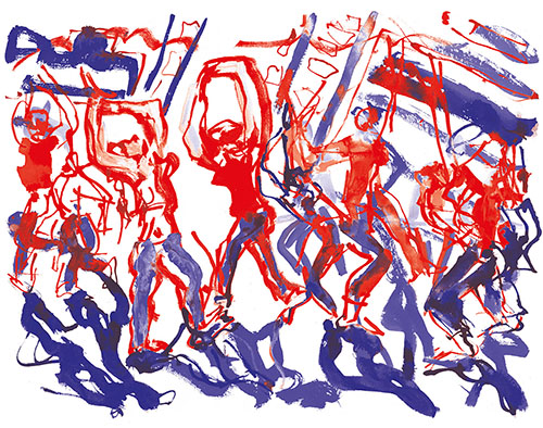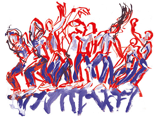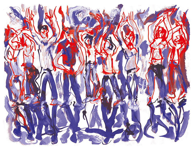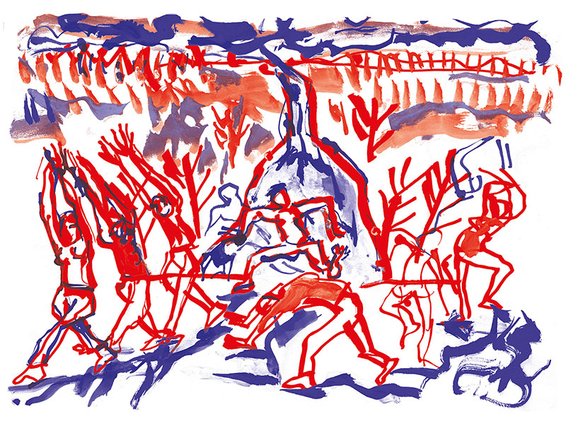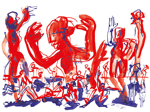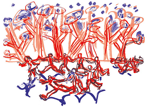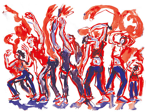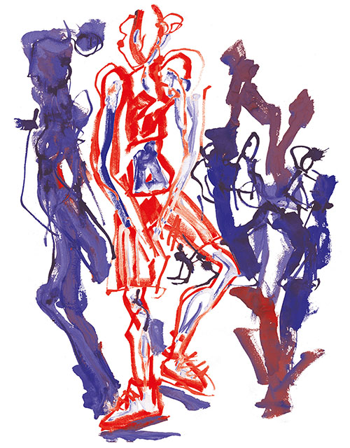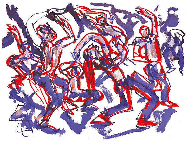 Je me souviens aussi comme ces jeunes étaient à la fois excités par le trac de jouer mais aussi confiants parce qu’ils avaient été regardés, guidés, aimés par les intervenants. voilà un frémissement, une vibration, une vague d’émotion que je revois dans les dessins de Patrick. » Yan Raballand