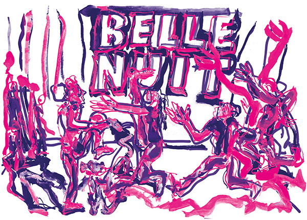 Pour moi, « Jusqu’au soir » n’est pas une image négative comme une absence de couleurs, mais bien, ainsi que le dit Soulages de son « outrenoir », « la réflexion de la lumière sur les états de surface de cette couleur noire ». Voici donc ce que je peux lire du travail de Charlotte : un « outrenoir » de Soulages. La musique, les lumières, les corps réfléchissent.