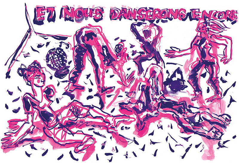 Charlotte bouge avec des angles, une danse acérée, une danse qui coupe l’espace, comme pour bien inscrire des traits de lumière dans le noir d’encre de la scène : j’imagine Soulages et son couteau de peintre. Je n’oublie pas les autres danseuses, belles, solides, présentes, tranchantes.